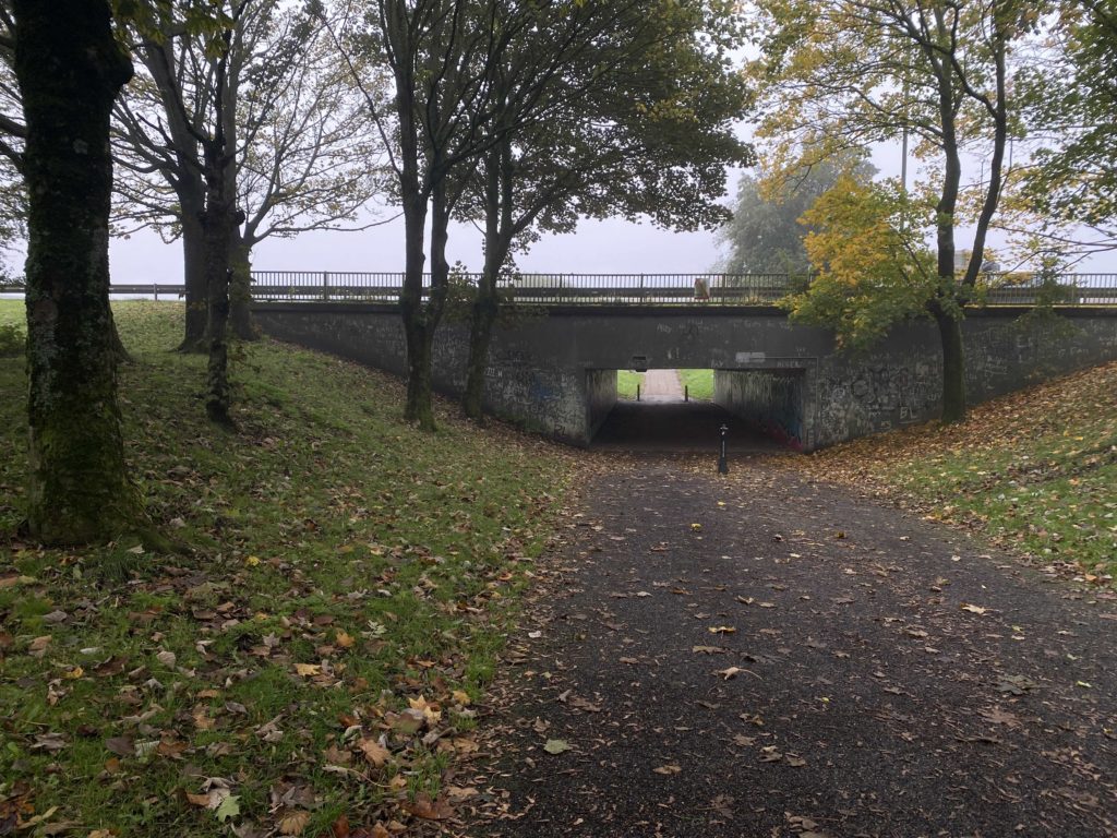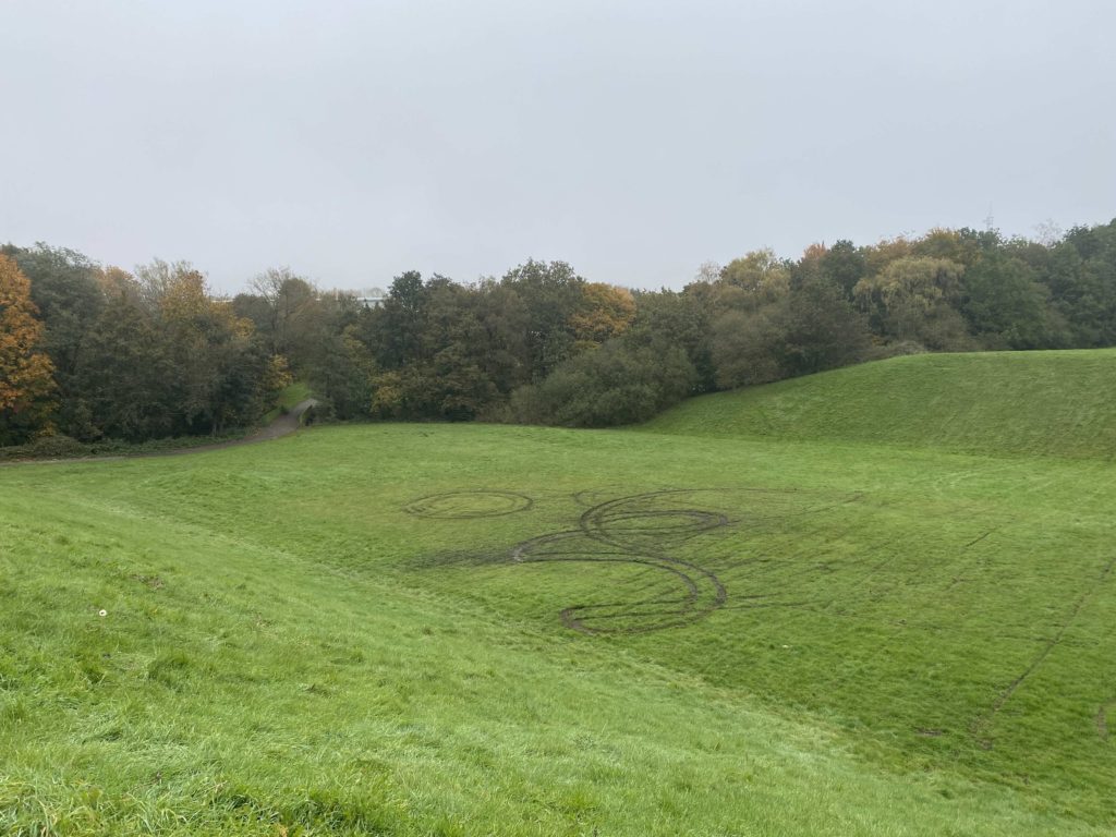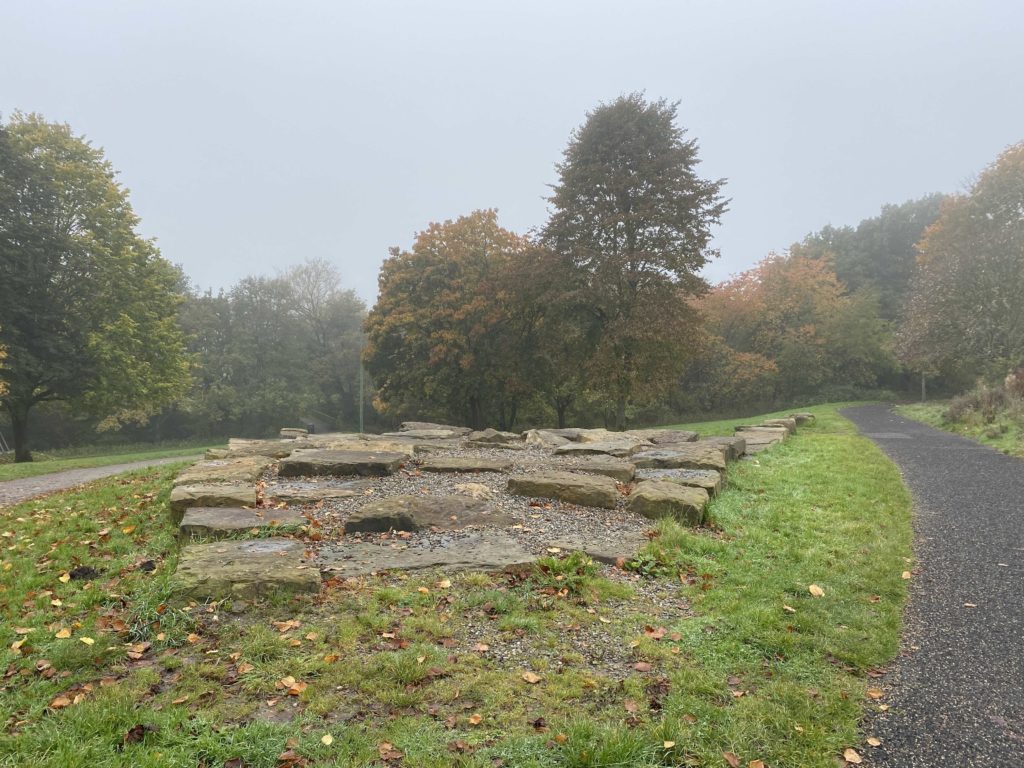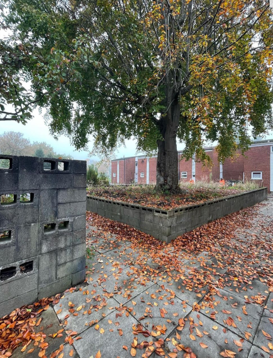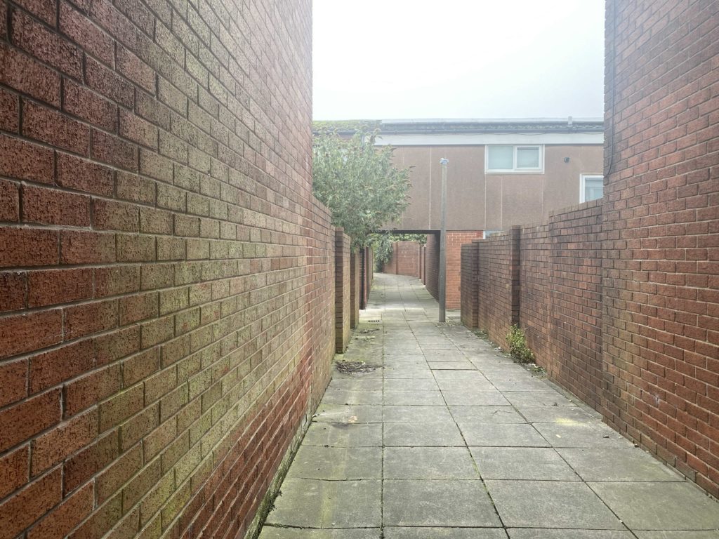 Walked through New Church Farm housing estate and towards the Mike Cumiskey concrete artworks alongside Railway Road. We discussed with Richard his interest in this architecture, how politically it could exist, what were the social reasons for a new town? What hopes and benefits did this type of modernist design bring to Skelmersdale?